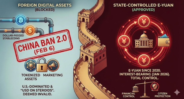 On February 6, eight Chinese government agencies jointly issued what some are calling “China Ban 2.0.” This time, they went further, expanding the ban to cover stablecoins, tokenized assets, and even marketing or naming a company in a way that supports digital asset activity. They also said that investing in digital assets violates “public order and good morals,” meaning those transactions can be declared invalid by a court.