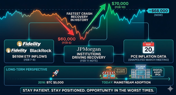 The bounce from $60,000 back to $70,000 in four days was the fastest crash recovery in Bitcoin’s history. Fidelity and BlackRock led the buying with $616 million in ETF inflows on February 7 and 8. JPMorgan published a note on February 11 saying they expect recovery to be driven by institutions, not retail. All eyes are now on the PCE inflation data due February 20, which will shape what the Fed does at its March meeting.